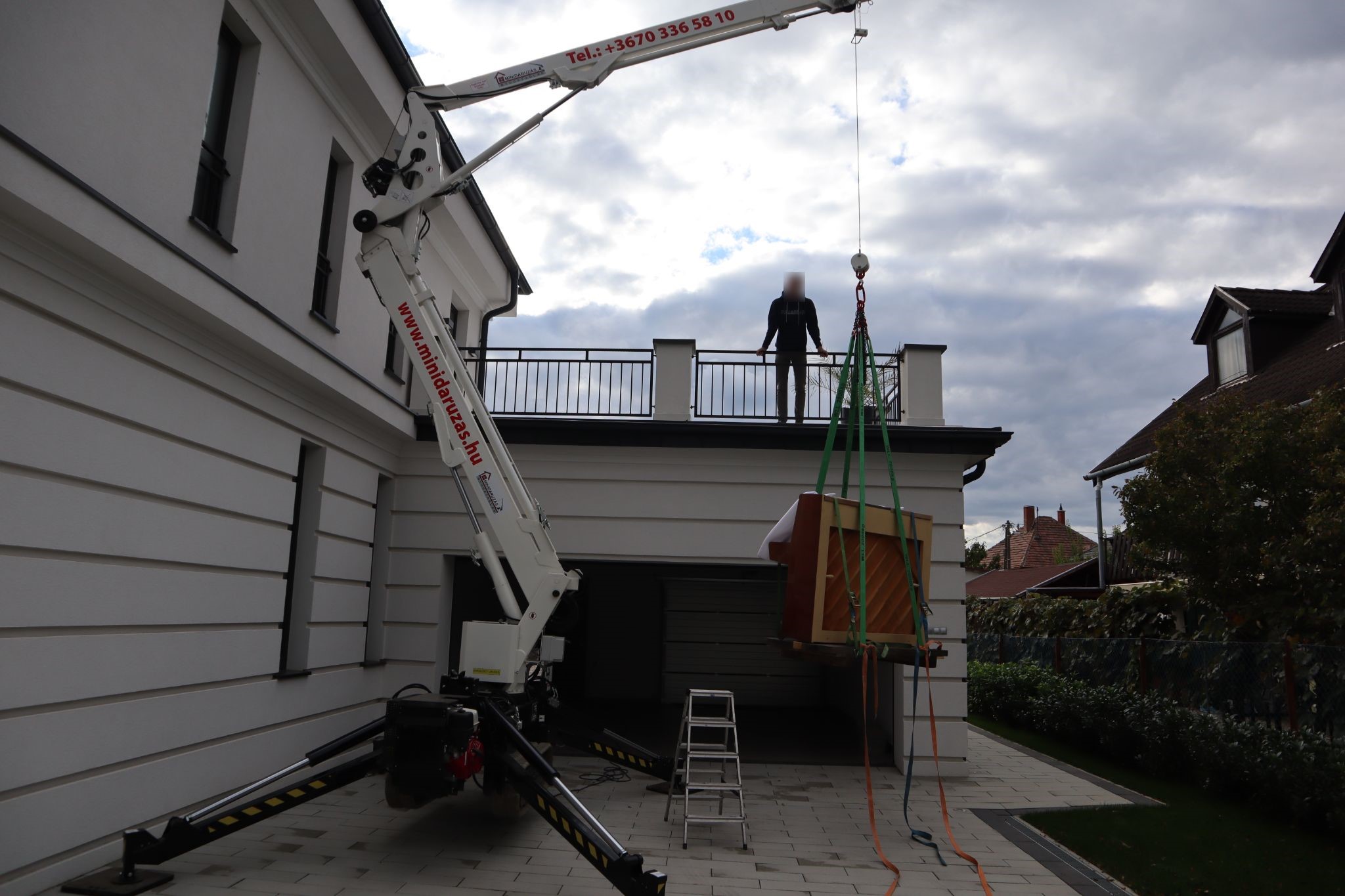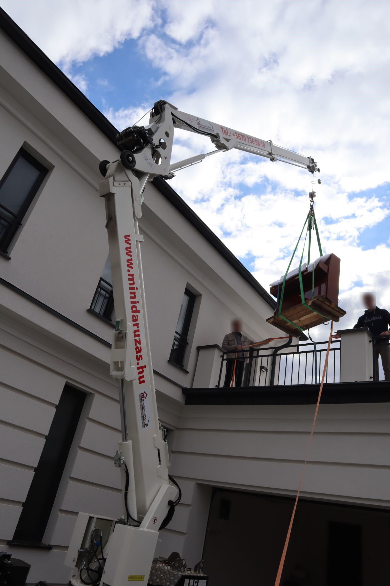 Nehéz vagy nehezen megközelíthető tárgyak biztonságos emelése és mozgatása daruval.